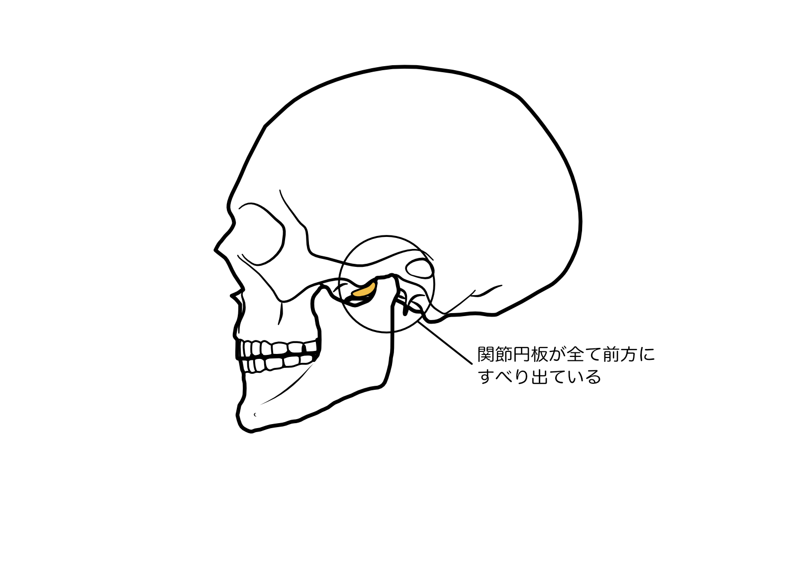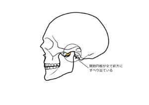 関節円板の上に下顎の関節頭が乗っかって、下顎が動きます。 かみ合わせが下がったりして関節頭が関節円板から落ちると、関節円板が引っかかるようになり音がしたり最悪顎が開かなくなったりします。 なぜこうなるのか。 顎の位置が変わるからです。 1,片側だけで嚙んでる。 2,頬杖を突く。 3,歯並び 4,加齢により歯がすり減った。 5,歯科治療を受けてかみ合わせが低くなってしまった。 など。 顎の傾きが顔に対してずれてます。歯並びだけを治してもいけません。 また、多くのケースで下顎の関節頭が削れてます。 これにより顎のスムーズな動きが妨げられます。(顎関節症) ではどうすればよいか。 関節頭を関節円板に乗せることを目指します。 下顎窩と下顎頭の距離がなくなってるのでここにスペースを作る必要があります。 そのためには奥歯のかみ合わせを上げることでそのスペースができます。 歯を動かす矯正治療で治る可能性があります。 矯正治療で頸椎の角度が変わり呼吸がしやすくなったり、頸動脈の流れが良くなったり肩こり頭痛が治ったり良い効果が得られる場合があります。